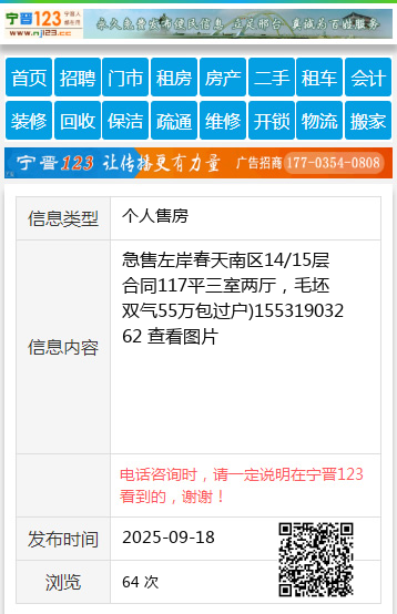 急售左岸春天南区14/15层合同117平三室两厅,毛坯双气55万包过户)15531903262 查看图片