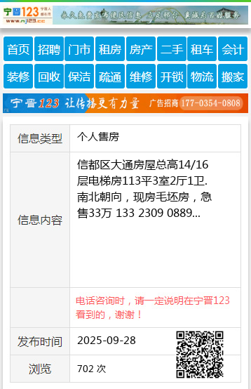 信都区大通房屋总高14/16层电梯房113平3室2厅1卫.南北朝向,现房毛坯房,急售33万 133 2309 0889