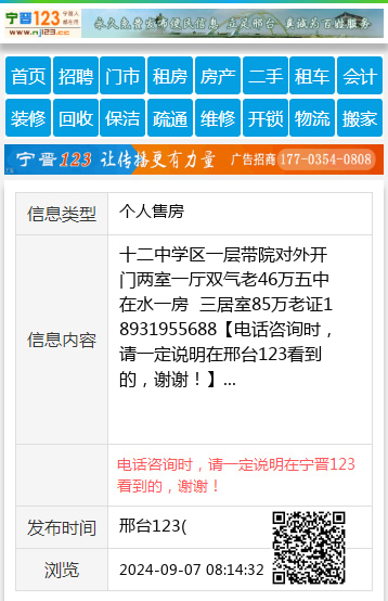 十二中学区一层带院对外开门两室一厅双气老46万五中 在水一房 三居室85万老证18931955688 【电话咨询时,请一定说明在邢台123看到的,谢谢!】 |