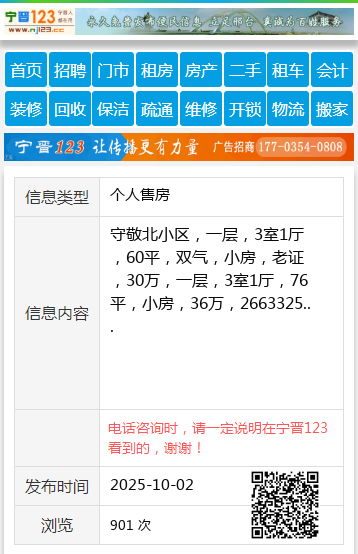 守敬北小区,一层,3室1厅,60平,双气,小房,老证,30万,一层,3室1厅,76平,小房,36万,2663325