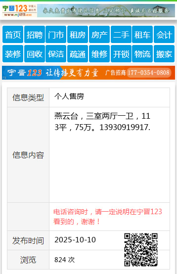 燕云台,三室两厅一卫,113平,75万。13930919917.