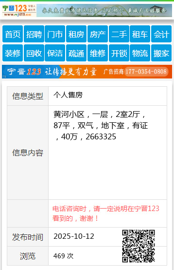黄河小区,一层,2室2厅,87平,双气,地下室,有证,40万,2663325
