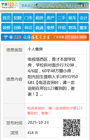 免责声明:本栏目信息由网友自行发布,邢台123不承担任何责任!提高警惕,谨防诈骗!做推广、做信息置顶!请加邢台123客服微信:cnxingtai