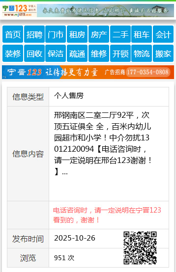 免责声明:本栏目信息由网友自行发布,邢台123不承担任何责任!提高警惕,谨防诈骗!做推广、做信息置顶!请加邢台123客服微信:cnxingtai