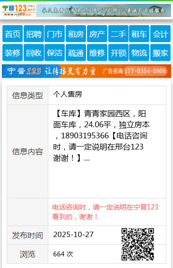 【车库】青青家园西区,阳面车库,24.06平,独立房本,18903195366