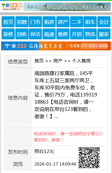 南园路建行家属院,145平车库上五层三室两厅两卫,车库30平院内免费车位,老证,售价79万,电话13931918863 【电话咨询时,请一定说明在邢台123看到的,谢谢!】 |