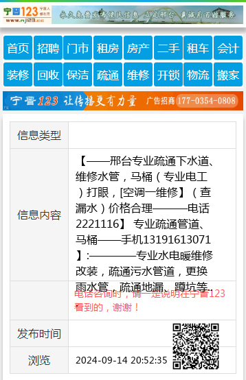 【——邢台专业疏通下水道、维修水管,马桶(专业电工)打眼,[空调一维修】(查漏水)价格合理———电话2221116】 专业疏通管道、马桶——手机13191613071】:————专业水电暖维修改装,疏通污水管道,更换雨水管,疏通地漏、蹲坑等、维修上下水管。修水管换阀门,1.马桶:专业疏通各种型号马桶,因抹布、清洁球、塑料等各种软硬物质所造成的堵塞。 2.地漏:专业疏通各种型、S型拐弯的地漏,因装修掉进水泥、沙子或头发等原因造成的堵塞。 3.墫坑:因为墫坑年久了,管道弯头产生厚厚的尿碱,造成墫坑下水慢、易堵。承接疏通卫生间防水、 精准测漏水 ,空调移机 维修 加氟 回收。 地址、电话:13191613071 管道疏通 |