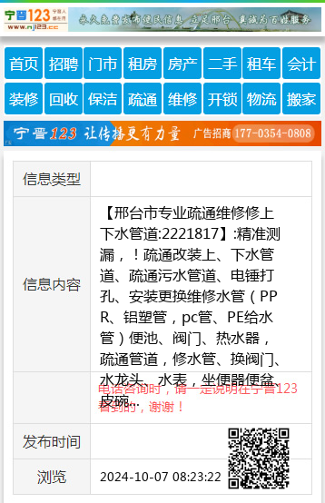 【邢台市专业疏通维修修上下水管道:2221817】:精准测漏,!疏通改装上、下水管道、疏通污水管道、电锤打孔、安装更换维修水管(PPR、铝塑管,pc管、PE给水管)便池、阀门、热水器,疏通管道,修水管、换阀门、水龙头、水表,坐便器便盆、皮碗、水钻打孔卫生间做防水、建筑杂活疏通各种疑难下水道、上下水安装、空调移机加氟、挖凿门口、墙、地面,修装太阳能热水器,地暖暖气、地暖打压清洗,专业电工,电焊工上门服务,开锁换锁 地址、电话:2221817手机:13082026377 |