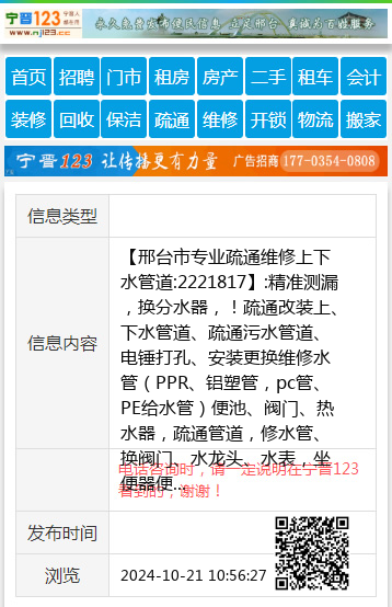 【邢台市专业疏通维修上下水管道:2221817】:精准测漏,换分水器,!疏通改装上、下水管道、疏通污水管道、电锤打孔、安装更换维修水管(PPR、铝塑管,pc管、PE给水管)便池、阀门、热水器,疏通管道,修水管、换阀门、水龙头、水表,坐便器便盆、皮碗、水钻打孔卫生间做防水、建筑杂活疏通各种疑难下水道、上下水安装、空调移机加氟、挖凿门口、墙、地面,修装太阳能热水器,地暖暖气、地暖打压清洗,专业电工,电焊工上门服务,开锁换锁, 地址、电话:2221817手机:13082026377 |