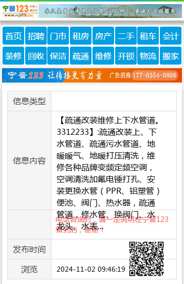 【疏通改装维修上下水管道。3312233】:疏通改装上、下水管道、疏通污水管道、地暖暖气、地暖打压清洗,维修各种品牌变频定频空调,空调清洗加氟电锤打孔、安装更换水管(PPR、铝塑管)便池、阀门、热水器,疏通管道,修水管、换阀门、水龙头、水表,坐便器便盆、皮碗、水钻打孔卫生间做防水、建筑杂活疏通各种疑难下水道、上下水安装、空调移机加氟、挖凿门口、墙、地面,修装太阳能热水器,开锁换锁 地址、电话:13103093177 |