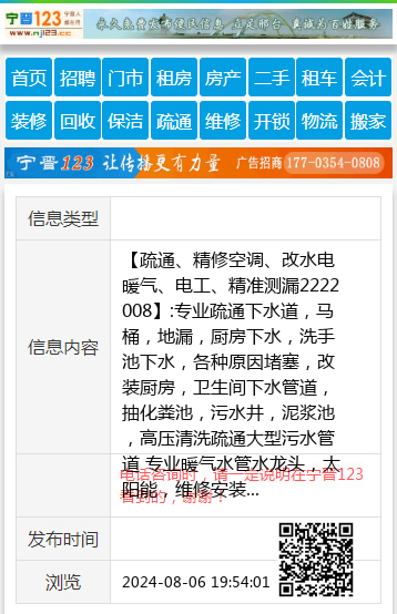 【疏通、精修空调、改水电暖气、电工、精准测漏2222008】:专业疏通下水道,马桶,地漏,厨房下水,洗手池下水,各种原因堵塞,改装厨房,卫生间下水管道,抽化粪池,污水井,泥浆池,高压清洗疏通大型污水管道 专业暖气水管水龙头,太阳能,维修安装,换阀门,地漏,卫生洁具,冷热水龙头,上下水改装,楼上往楼下漏水,地下水管漏水,蹲坑漏水,维修,地暖清洗打压换分水器,换雨水管道,做防水,水钻电锤打孔,家庭电工, 地址、电话:2222008--15533191758 |
