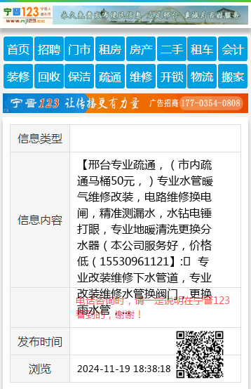 【邢台专业疏通,(市内疏通马桶50元,)专业水管暖气维修改装,电路维修换电闸,精准测漏水,水钻电锤打眼,专业地暖清洗更换分水器(本公司服务好,价格低(15530961121】: 专业改装维修下水管道,专业改装维修水管换阀门,更换雨水管,专业维修马桶漏水,疏通各种排水管道,卫生间反味维修,专业更换卫生间地漏,维修卫生间漏水等。服务范围桥东,桥西及邢台县周边(市内10-20分钟上门为你服务)佳洁疏通吕师傅15530961121, 地址、电话:桥东新华路,开元路,电话3028223.桥西守敬路,钢铁路电话2629617 管道疏通 |