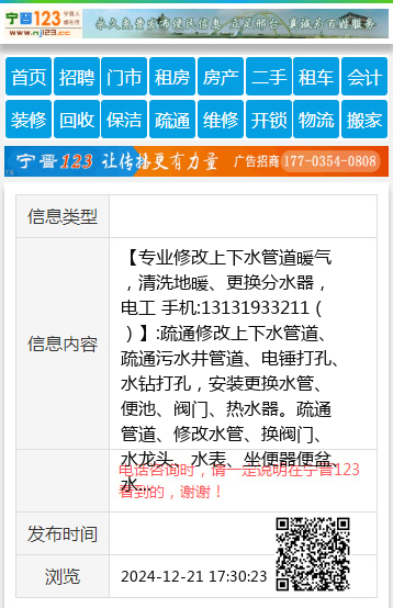 【专业修改上下水管道暖气,清洗地暖、更换分水器,电工 手机:13131933211( )】:疏通修改上下水管道、疏通污水井管道、电锤打孔、水钻打孔,安装更换水管、便池、阀门、热水器。疏通管道、修改水管、换阀门、水龙头、水表、坐便器便盆、水钻打孔,更换地漏、便池、阀门、热水器。修水管换阀门、水龙头、水表、维修更换坐便器、蹲便,家庭电工、 精准测漏水 地暖 暖气 自来水,地暖清洗 更换分水器。空调移机 维修 加氟 回收。 地址、电话:桥东0319-3333378;桥西0319-2222278 管道疏通 |