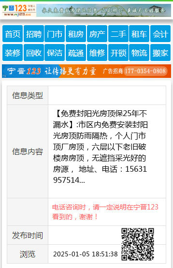 【免费封阳光房顶保25年不漏水】:市区内免费安装封阳光房顶防雨隔热,个人门市顶厂房顶,六层以下老旧破楼房房顶,无遮挡采光好的房源, 地址、电话:15631957514