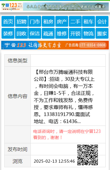 免责声明:本栏目信息由网友自行发布,邢台123不承担任何责任!提高警惕,谨防诈骗!做推广、做信息置顶!请加邢台123客服微信:cnxingtai