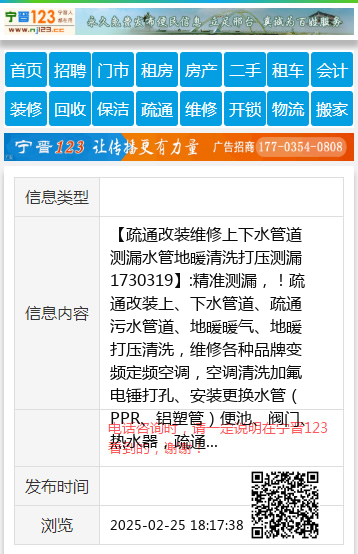 【疏通改装维修上下水管道测漏水管地暖清洗打压测漏1730319】:精准测漏,!疏通改装上、下水管道、疏通污水管道、地暖暖气、地暖打压清洗,维修各种品牌变频定频空调,空调清洗加氟电锤打孔、安装更换水管(PPR、铝塑管)便池、阀门、热水器,疏通管道,修水管、换阀门、水龙头、水表,坐便器便盆、皮碗、水钻打孔卫生间做防水、建筑杂活疏通各种疑难下水道、上下水安装、空调移机加氟、挖凿门口、墙、地面,修装太阳能热水器,专业电工,电焊工上门服务,专业美缝,开锁换锁,家庭保洁 地址、电话:服务电话 17303191587 |