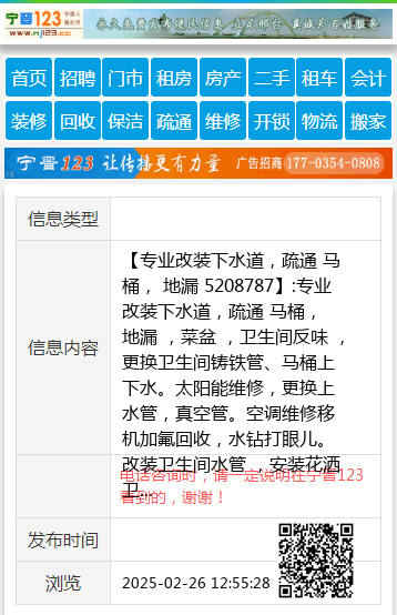 【专业改装下水道,疏通 马桶, 地漏 5208787】:专业改装下水道,疏通 马桶, 地漏 ,菜盆 ,卫生间反味 ,更换卫生间铸铁管、马桶上下水。太阳能维修,更换上水管,真空管。空调维修移机加氟回收,水钻打眼儿。改装卫生间水管 ,安装花洒卫浴,换水龙头,换阀门,水龙头软管 ,取水管断丝 ,马桶漏水。家庭电工,换开关插座,电闸,装灯布线,查线路故障。换暖气片,地暖分水器,暖气拆装,专业清洗地暖 ,检测暗管漏水。地暖打压 地址、电话:18032970993 |