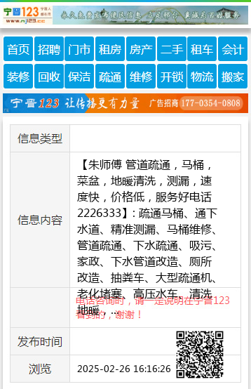 【朱师傅 管道疏通,马桶,菜盆,地暖清洗,测漏,速度快,价格低,服务好电话2226333】: 疏通马桶、通下水道、精准测漏、马桶维修、管道疏通、下水疏通、吸污、家政、下水管道改造、厕所改造、抽粪车、大型疏通机、老化堵塞、高压水车、清洗地暖,马桶漏水,菜池堵了,厨房水槽堵塞,下水道堵塞,卫生间反味,打捞服务,打捞手机,打捞戒指等,需要维修下水管道、地暖漏水,地热管测漏,管道疏通等问题 请与我联系, 地址、电话:邢台全市30分钟内到达电话 同号 19131133383、2226333 管道疏通 |