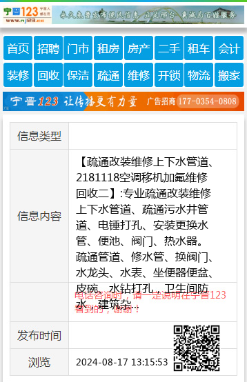 【疏通改装维修上下水管道、2181118空调移机加氟维修回收二】:专业疏通改装维修上下水管道、疏通污水井管道、电锤打孔、安装更换水管、便池、阀门、热水器。疏通管道、修水管、换阀门、水龙头、水表、坐便器便盆、皮碗、水钻打孔,卫生间防水,建筑杂活疏通管道 承接疏通各种疑难下水道、上下水安装 专业疏通改装上、下水管道、电锤打孔、便池阀门热水器。疏通管道修水管换阀门、水龙头、水表、坐便器便盆、皮碗、水钻打孔,家庭电工、卫生间防水、开换锁 空调移机加氟维修回收 地址、电话:桥东2181118桥西13223267036 |
