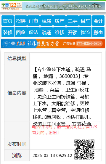 【专业改装下水道,疏通 马桶, 地漏 ,3690033】:专业改装下水道,疏通 马桶, 地漏 ,菜盆 ,卫生间反味 ,更换卫生间铸铁管、马桶上下水。太阳能维修,更换上水管,真空管。空调维修移机加氟回收,水钻打眼儿。改装卫生间水管 ,安装花洒卫浴,换水龙头,换阀门,水龙头软管 ,取水管断丝 ,马桶漏水。家庭电工,换开关插座,电闸,装灯布线,查线路故障。换暖气片,地暖分水器,暖气拆装,专业清洗地暖 ,检测暗管漏水。地暖打压 。擦玻璃。 家庭维修等。 地址、电话:15933690033 【电话咨询时,请一定说明在邢台123看到的,谢谢!】 |