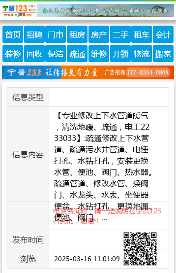 【专业修改上下水管道暖气,清洗地暖、疏通,电工2233033】:疏通修改上下水管道、疏通污水井管道、电锤打孔、水钻打孔,安装更换水管、便池、阀门、热水器。疏通管道、修改水管、换阀门、水龙头、水表、坐便器便盆、水钻打孔,更换地漏、便池、阀门、热水器。修水管换阀门、水龙头、水表、维修更换坐便器、蹲便,家庭电工、 精准测漏水 地暖 暖气 自来水,地暖清洗 更换分水器。空调移机 维修 加氟 回收。 地址、电话:桥西钢铁路桥东顺德路2233033--13223256202 |