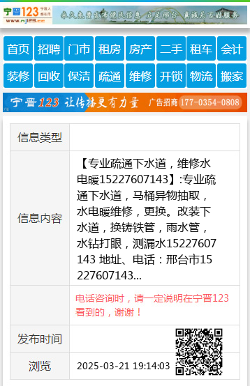 【专业疏通下水道,维修水电暖15227607143】:专业疏通下水道,马桶异物抽取,水电暖维修,更换。改装下水道,换铸铁管,雨水管,水钻打眼,测漏水15227607143 地址、电话:邢台市15227607143