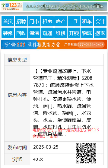 【【专业疏通改装上、下水管道电工,精准测漏】5208787】:: 疏通改装维修上下水管道、疏通污水井管道、电锤打孔、安装更换水管、便池、阀门、热水器。疏通管道、修水管、换阀门、水龙头、水表、坐便器便盆、皮碗、水钻打孔,卫生间防水,建筑杂活疏通管道 承接疏通各种疑难下水道、上下水安装 专业疏通改装上、下水管道、电锤打孔、便池阀门热水器。疏通管道修水管换阀门、水龙头、水表、坐便器便盆、皮碗、水钻打孔,家庭电工、卫生间防水、清洗地暖 精准测漏水 地暖 !!开换锁 !! 清洗太阳能 !!空调移机加氟维修!回收二手空调! 地址、电话:13315911021 |