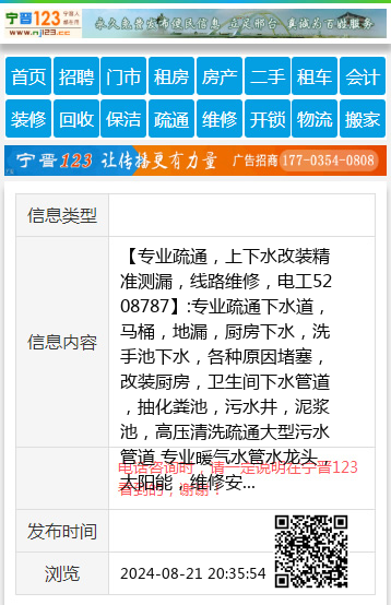 【专业疏通,上下水改装精准测漏,线路维修,电工5208787】:专业疏通下水道,马桶,地漏,厨房下水,洗手池下水,各种原因堵塞,改装厨房,卫生间下水管道,抽化粪池,污水井,泥浆池,高压清洗疏通大型污水管道 专业暖气水管水龙头,太阳能,维修安装,换阀门,地漏,卫生洁具,冷热水龙头,上下水改装,楼上往楼下漏水,地下水管漏水,蹲坑漏水,维修,地暖清洗打压换分水器,换雨水管道,做防水,水钻电锤打孔,家庭电工, 地址、电话:18032970993 |