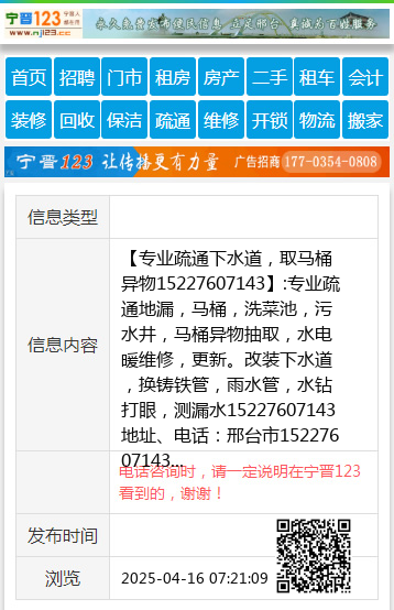 【专业疏通下水道,取马桶异物15227607143】:专业疏通地漏,马桶,洗菜池,污水井,马桶异物抽取,水电暖维修,更新。改装下水道,换铸铁管,雨水管,水钻打眼,测漏水15227607143 地址、电话:邢台市15227607143