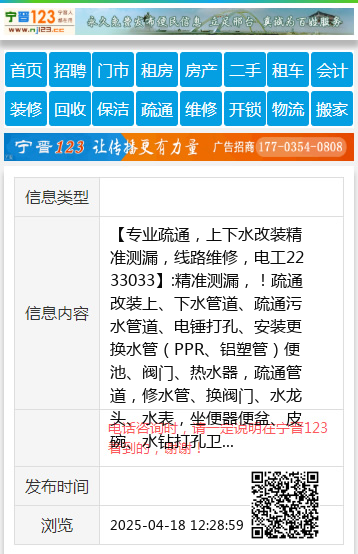 【专业疏通,上下水改装精准测漏,线路维修,电工2233033】:精准测漏,!疏通改装上、下水管道、疏通污水管道、电锤打孔、安装更换水管(PPR、铝塑管)便池、阀门、热水器,疏通管道,修水管、换阀门、水龙头、水表,坐便器便盆、皮碗、水钻打孔卫生间做防水、建筑杂活疏通各种疑难下水道、上下水安装、空调移机加氟、挖凿门口、墙、地面,修装太阳能热水器,地暖暖气、地暖打压清洗,专业电工,电焊工上门服务,专业美缝,开锁换锁,家庭保洁,修装学校商场中央空调,修装消防管道、修装各种消防喷头 地址、电话:桥西钢铁路桥东顺德路2233033--13223256202 |