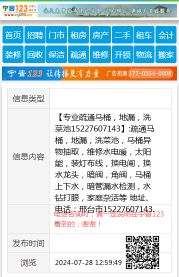 【专业疏通马桶,地漏,洗菜池15227607143】:疏通马桶,地漏,洗菜池,马桶异物抽取,维修水电暖,太阳能,装灯布线,换电闸,换水龙头,暗阀,角阀,马桶上下水,暗管漏水检测,水钻打眼,家庭杂活等 地址、电话:邢台市15227607143