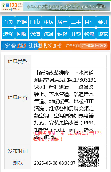 【疏通改装维修上下水管道测漏空调清洗加氟17303191587】:精准测漏,!疏通改装上、下水管道、疏通污水管道、地暖暖气、地暖打压清洗,维修各种品牌变频定频空调,空调清洗加氟电锤打孔、安装更换水管(PPR、铝塑管)便池、阀门、热水器,疏通管道,修水管、换阀门、水龙头、水表,坐便器便盆、皮碗、水钻打孔卫生间做防水、建筑杂活疏通各种疑难下水道、上下水安装、空调移机加氟、挖凿门口、墙、地面,修装太阳能热水器,专业电工,电焊工上门服务,专业美缝,开锁换锁,家庭保洁 地址、电话:服务电话 17303191587 |