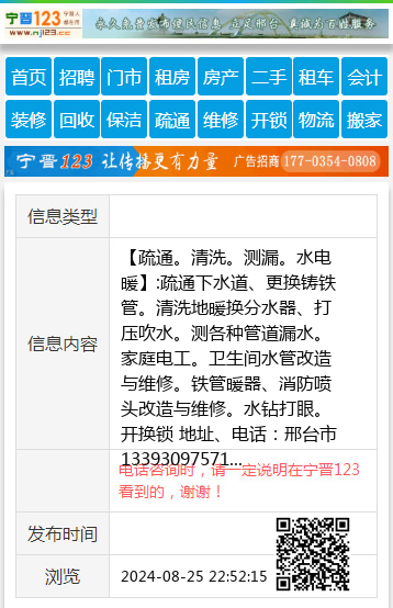 【疏通。清洗。测漏。水电暖】:疏通下水道、更换铸铁管。清洗地暖换分水器、打压吹水。测各种管道漏水。家庭电工。卫生间水管改造与维修。铁管暖器、消防喷头改造与维修。水钻打眼。开换锁 地址、电话:邢台市13393097571