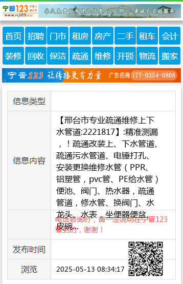 【邢台市专业疏通维修上下水管道:2221817】:精准测漏,!疏通改装上、下水管道、疏通污水管道、电锤打孔、安装更换维修水管(PPR、铝塑管,pvc管、PE给水管)便池、阀门、热水器,疏通管道,修水管、换阀门、水龙头、水表,坐便器便盆、皮碗、水钻打孔卫生间做防水、建筑杂活疏通各种疑难下水道、上下0水安装、空调移机加氟、挖凿门口、墙、地面,修装太阳能热水器,地暖暖气、地暖打压清洗,专业电工,电焊工上门服务,开锁换锁 地址、电话:2221817手机:13082026377 |