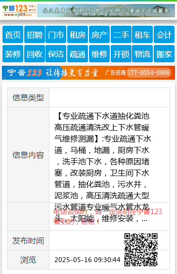 【专业疏通下水道抽化粪池高压疏通清洗改上下水管暖气维修测漏】:专业疏通下水道,马桶,地漏,厨房下水,洗手池下水,各种原因堵塞,改装厨房,卫生间下水管道,抽化粪池,污水井,泥浆池,高压清洗疏通大型污水管道专业暖气水管水龙头,太阳能,维修安装,换阀门,地漏,卫生洁具,冷热水龙头,上下水改装,楼上往楼下漏水,地下水管漏水,蹲坑漏水,维修,地暖清洗打压换分水器,换雨水管道,做防水,水钻电锤打孔,家庭电工, 地址、电话:电话是2222903手机18617619873 |