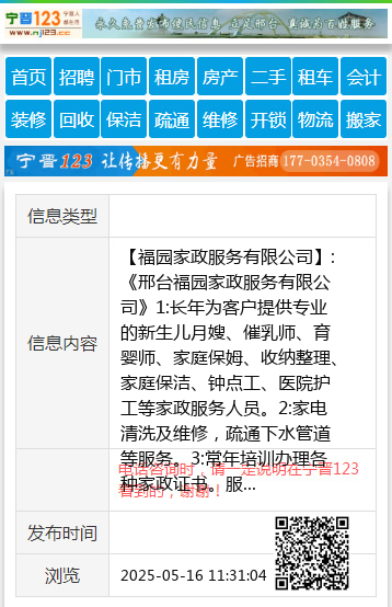 【福园家政服务有限公司】:《邢台福园家政服务有限公司》1:长年为客户提供专业的新生儿月嫂、催乳师、育婴师、家庭保姆、收纳整理、家庭保洁、钟点工、医院护工等家政服务人员。2:家电清洗及维修,疏通下水管道等服务。3:常年培训办理各种家政证书。服务热线17732981973: 15532965931(微信同号) 地址、电话:17732981973 |