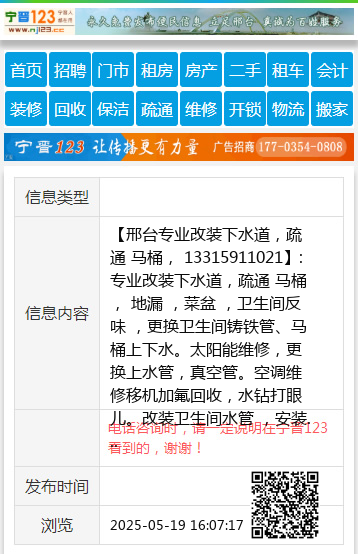 【邢台专业改装下水道,疏通 马桶, 13315911021】:专业改装下水道,疏通 马桶, 地漏 ,菜盆 ,卫生间反味 ,更换卫生间铸铁管、马桶上下水。太阳能维修,更换上水管,真空管。空调维修移机加氟回收,水钻打眼儿。改装卫生间水管 ,安装花洒卫浴,换水龙头,换阀门,水龙头软管 ,取水管断丝 ,马桶漏水。家庭电工,换开关插座,电闸,装灯布线,查线路故障。换暖气片,地暖分水器,暖气拆装,专业清洗地暖 ,检测暗管漏水。地暖打压 。擦玻璃。 家庭维修等。 地址、电话:桥东5208787桥西2224399 |