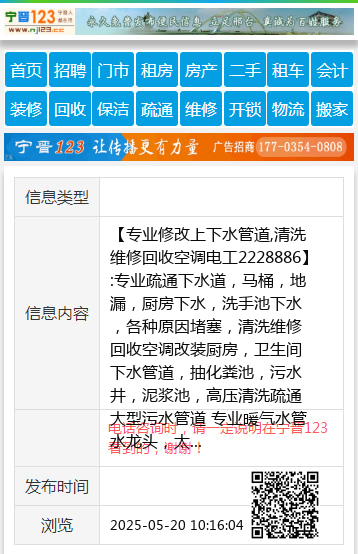 【专业修改上下水管道,清洗维修回收空调电工2228886】:专业疏通下水道,马桶,地漏,厨房下水,洗手池下水,各种原因堵塞,清洗维修回收空调改装厨房,卫生间下水管道,抽化粪池,污水井,泥浆池,高压清洗疏通大型污水管道 专业暖气水管水龙头,太阳能,维修安装,换阀门,地漏,卫生洁具,冷热水龙头,上下水改装,楼上往楼下漏水,地下水管漏水,蹲坑漏水,维修,地暖清洗打压换分水器,换雨水管道,做防水,水钻电锤打孔,家庭电工,专业清洗地暖,暖气,自来水管道,电暖器,用最先进的脉冲清洗技术,清洗干净彻底,清洗过程干净卫生,射蛋深度清洗,效果立竿见影 地址、电话:桥东13102589787 桥西2228886 |