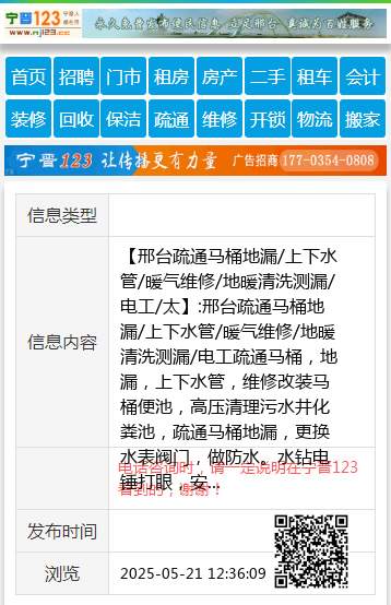【邢台疏通马桶地漏/上下水管/暖气维修/地暖清洗测漏/电工/太】:邢台疏通马桶地漏/上下水管/暖气维修/地暖清洗测漏/电工疏通马桶,地漏,上下水管,维修改装马桶便池,高压清理污水井化粪池,疏通马桶地漏,更换水表阀门,做防水。水钻电锤打眼,安装卫浴,马桶,地漏,浴霸,灯具,太阳能,热水器,油烟机。家庭电工,电路短路断路维修,更换电闸,漏电保护器。维修安装暖气,PPR水管维修,更换地暖分水器,安装排风扇,油烟机,地暖清洗打压测漏,空调移机维修清洗回收,清洗维修热水器,太阳能,维修壁挂太阳能加装介质。维修各种家用电器。 地址、电话:15613967477 |