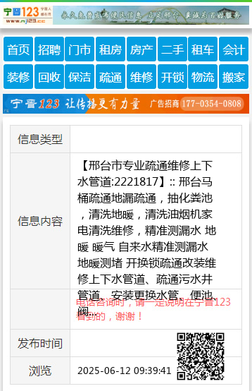【邢台市专业疏通维修上下水管道:2221817】:: 邢台马桶疏通地漏疏通,抽化粪池,清洗地暖,清洗油烟机家电清洗维修,精准测漏水 地暖 暖气 自来水精准测漏水 地暖测堵 开换锁疏通改装维修上下水管道、疏通污水井管道、安装更换水管、便池、阀门、热水器。疏通管道、修水管、换阀门、水龙头、水表、坐便器便盆、皮碗、水钻打孔,卫生间防水,建筑杂活疏通管道 承接疏通各种疑难下水道、上下水安装 专业疏通改装上、下水管道、便池阀门热水器。疏通管道修水管换阀门、水龙头、水表、坐便器便盆、皮碗,家庭电工、卫生间防水,桥东桥西周边家庭各种活 地址、电话:2221817手机:13082026377 |