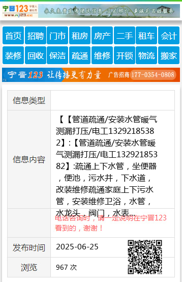 【【管道疏通/安装水管暖气测漏打压/电工13292185382】:【管道疏通/安装水管暖气测漏打压/电工13292185382】:疏通上下水管,坐便器,便池,污水井,下水道,改装维修疏通家庭上下污水管,安装维修卫浴,水管,水龙头,阀门,水表,安装维修橱柜,电锤水钻打眼,卫生间防水,房顶防水,清洗地暖,更换分水器,地暖水管测漏,安装维修太阳能,太阳能移机,安装维修热水器和液晶电视,按装维修洗衣机,油烟机,浴霸灯具维修,家庭电路维修更换插座,漏电保护器等,开锁换锁,更换锁具。 服务电话13292185382。 地址、电话:服务电话13292185382。 |