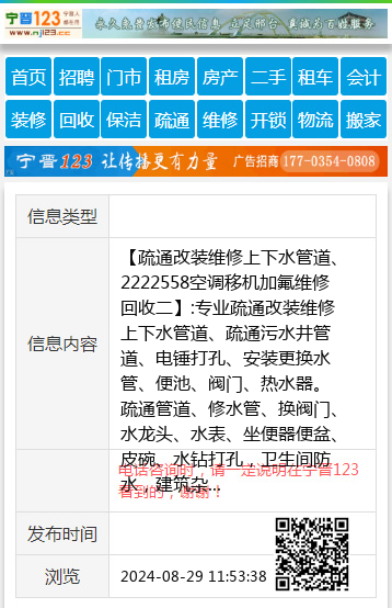 【疏通改装维修上下水管道、2222558空调移机加氟维修回收二】:专业疏通改装维修上下水管道、疏通污水井管道、电锤打孔、安装更换水管、便池、阀门、热水器。疏通管道、修水管、换阀门、水龙头、水表、坐便器便盆、皮碗、水钻打孔,卫生间防水,建筑杂活疏通管道 承接疏通各种疑难下水道、上下水安装 专业疏通改装上、下水管道、电锤打孔、便池阀门热水器。疏通管道修水管换阀门、水龙头、水表、坐便器便盆、皮碗、水钻打孔,家庭电工、卫生间防水、开换锁 空调加氟维修回收 地址、电话:桥西2222558桥东13223267036 |