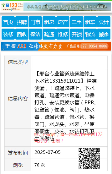 【邢台专业管道疏通维修上下水管13315911021】:精准测漏,!疏通改装上、下水管道、疏通污水管道、电锤打孔、安装更换水管(PPR、铝塑管)便池、阀门、热水器,疏通管道,修水管、换阀门、水龙头、水表,坐便器便盆、皮碗、水钻打孔卫生间做防水、建筑杂活疏通各种疑难下水道、上下水安装、空调移机加氟、挖凿门口、墙、地面,修装太阳能热水器,地暖暖气、地暖打压清洗,专业电工,电焊工上门服务,专业美缝,开锁换锁,家庭保洁,修装学校商场中央空调,修装消防管道、修装各种消防喷头 地址、电话:桥东5208787桥西2224399 |