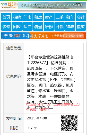 【邢台专业管道疏通维修电工2226677】:精准测漏,!疏通改装上、下水管道、疏通污水管道、电锤打孔、安装更换水管(PPR、铝塑管)便池、阀门、热水器,疏通管道,修水管、换阀门、水龙头、水表,坐便器便盆、皮碗、水钻打孔卫生间做防水、建筑杂活疏通各种疑难下水道、上下水安装、空调移机加氟、挖凿门口、墙、地面,修装太阳能热水器,地暖暖气、地暖打压清洗,专业电工,电焊工上门服务,专业美缝,开锁换锁,家庭保洁, 地址、电话:2226677 |