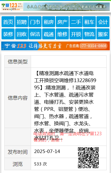 【精准测漏水疏通下水道电工开换锁空调维修1322869995】:精准测漏,!疏通改装上、下水管道、疏通污水管道、电锤打孔、安装更换水管(PPR、铝塑管)便池、阀门、热水器,疏通管道,修水管、换阀门、水龙头、水表,坐便器便盆、皮碗、水钻打孔卫生间做防水、建筑杂活疏通各种疑难下水道、上下水安装、空调移机加氟、挖凿门口、墙、地面,修装太阳能热水器,地暖暖气、地暖打压清洗,专业电工,电焊工上门服务,专业美缝,开锁换锁,家庭保洁,修装学校商场中央空调,修装消防管道、修装各种消防喷头 地址、电话:桥东3097818桥西2222515一2222267 |
