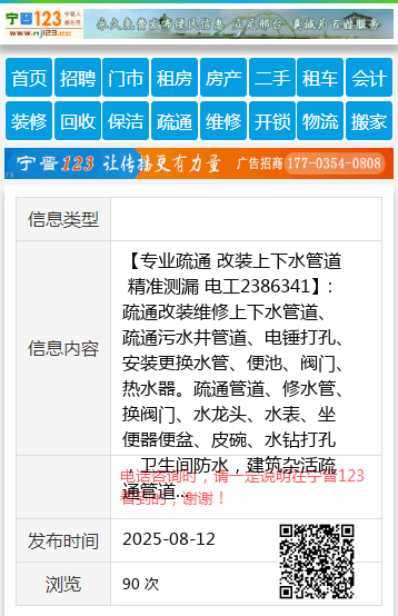 【专业疏通 改装上下水管道 精准测漏 电工2386341】:疏通改装维修上下水管道、疏通污水井管道、电锤打孔、安装更换水管、便池、阀门、热水器。疏通管道、修水管、换阀门、水龙头、水表、坐便器便盆、皮碗、水钻打孔,卫生间防水,建筑杂活疏通管道 承接疏通各种疑难下水道,电锤打孔、便池阀门热水器。疏通管道修水管换阀门、水龙头、水表、坐便器便盆、皮碗、水钻打孔,家庭电工、卫生间防水、清洗地暖 精准测漏水 地暖 ! 地址、电话:15614290950 |