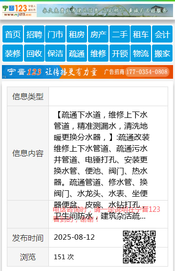 【疏通下水道,维修上下水管道,精准测漏水,清洗地暖更换分水器,】:疏通改装维修上下水管道、疏通污水井管道、电锤打孔、安装更换水管、便池、阀门、热水器。疏通管道、修水管、换阀门、水龙头、水表、坐便器便盆、皮碗、水钻打孔,卫生间防水,建筑杂活疏通管道 承接疏通各种疑难下水道、上下水安装 专业疏通改装上、下水管道、电锤打孔、便池阀门热水器。疏通管道修水管换阀门、水龙头、水表、坐便器便盆、皮碗、水钻打孔,家庭电工、卫生间防水、清洗地暖 ,更换分水器,精准测漏水 地暖 !!开换锁 !! 清洗太阳能 !!空调移机加氟维修!回收二手空调! 地址、电话:桥东3355855 桥西2222622 |