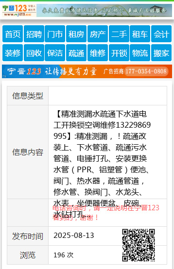 【精准测漏水疏通下水道电工开换锁空调维修13229869995】:精准测漏,!疏通改装上、下水管道、疏通污水管道、电锤打孔、安装更换水管(PPR、铝塑管)便池、阀门、热水器,疏通管道,修水管、换阀门、水龙头、水表,坐便器便盆、皮碗、水钻打孔卫生间做防水、建筑杂活疏通各种疑难下水道、上下水安装、空调移机加氟、挖凿门口、墙、地面,修装太阳能热水器,地暖暖气、地暖打压清洗,专业电工,电焊工上门服务,专业美缝,开锁换锁,家庭保洁,修装学校商场中央空调,修装消防管道、修装各种消防喷头 地址、电话:桥东3097818桥西2222515一2222267 |