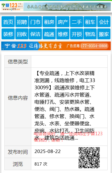 【专业疏通,上下水改装精准测漏,线路维修,电工3330099】:疏通改装维修上下水管道、疏通污水井管道、电锤打孔、安装更换水管、便池、阀门、热水器。疏通管道、修水管、换阀门、水龙头、水表、坐便器便盆、皮碗、水钻打孔,卫生间防水,建筑杂活疏通管道 承接疏通各种疑难下水道、上下水安装 专业疏通改装上、下水管道、电锤打孔、便池阀门热水器。疏通管道修水管换阀门、水龙头、水表、坐便器便盆、皮碗、水钻打孔,家庭电工、卫生间防水、清洗地暖 精准测漏水 地暖 !!开换锁 !! 清洗太阳能 !!空调移机加氟维修!回收二手空调!! 地址、电话:邢台市区3330099--13171756816 |
