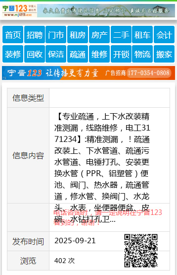 【专业疏通,上下水改装精准测漏,线路维修,电工3171234】:精准测漏,!疏通改装上、下水管道、疏通污水管道、电锤打孔、安装更换水管(PPR、铝塑管)便池、阀门、热水器,疏通管道,修水管、换阀门、水龙头、水表,坐便器便盆、皮碗、水钻打孔卫生间做防水、建筑杂活疏通各种疑难下水道、上下水安装、空调移机加氟、挖凿门口、墙、地面,修装太阳能热水器,地暖暖气、地暖打压清洗,专业电工,电焊工上门服务,专业美缝,开锁换锁,家庭保洁,修装学校商场中央空调,修装消防管道、修装各种消防喷头 地址、电话:桥东3171234👉👉👉桥西15532933523 |